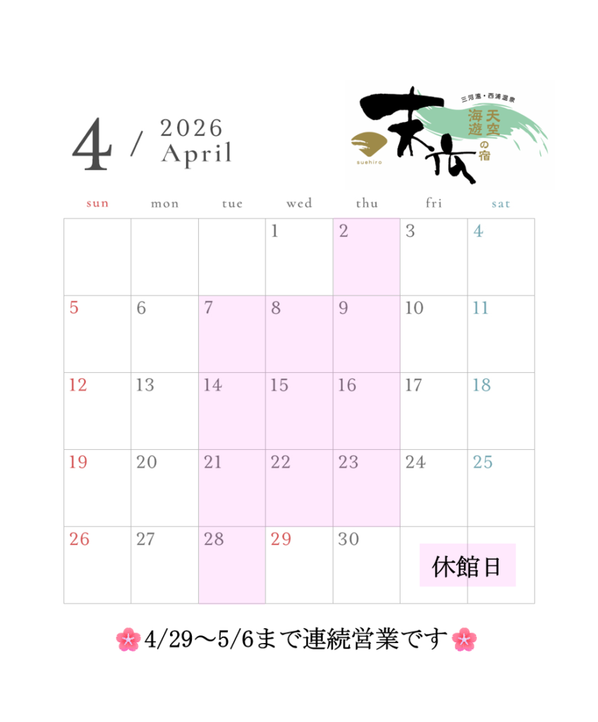 日頃より、天空海遊の宿末広をご利用頂きまして、誠にありがとうございます。